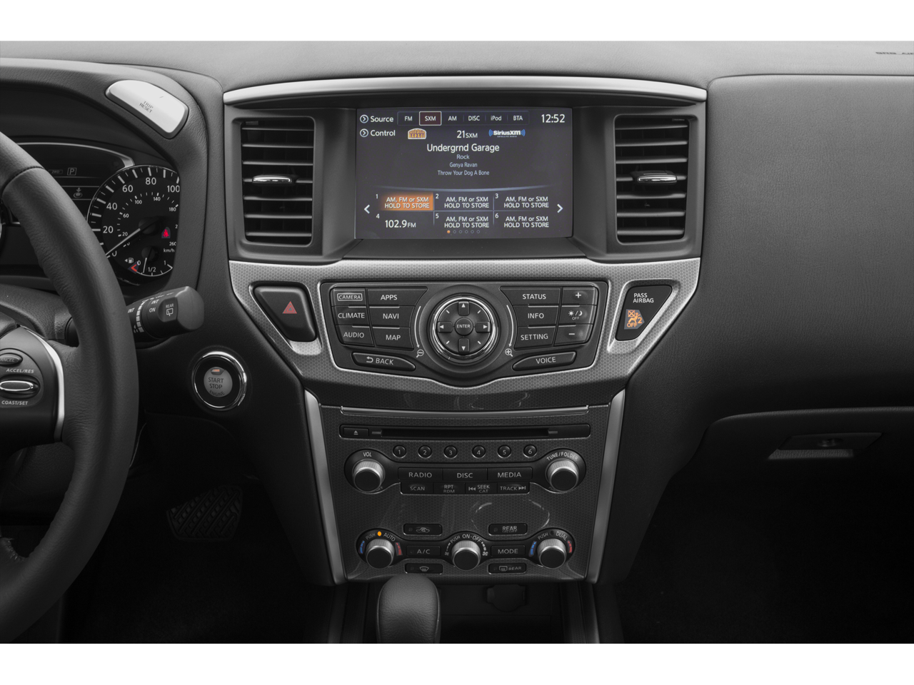Step inside the spacious and refined cabin, where you'll find seating for up to seven passengers, along with a wealth of convenience and comfort features. The Pathfinder SL's leather-appointed seats, heated steering wheel, and dual-zone automatic climate control ensure a truly premium driving experience.