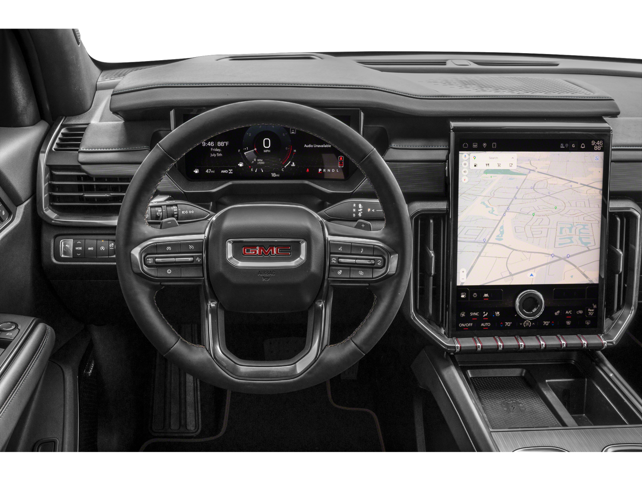 - 15" diagonal Premium GMC Infotainment System with high contrast display, with Google built-in compatibility, including navigation capability, color touch-screen, multi-touch display, connected apps, personalized profiles for each driver's settings, Natural Voice Recognition and Phone Integration for Wireless Apple CarPlay/Wireless Android Auto for compatible phones
